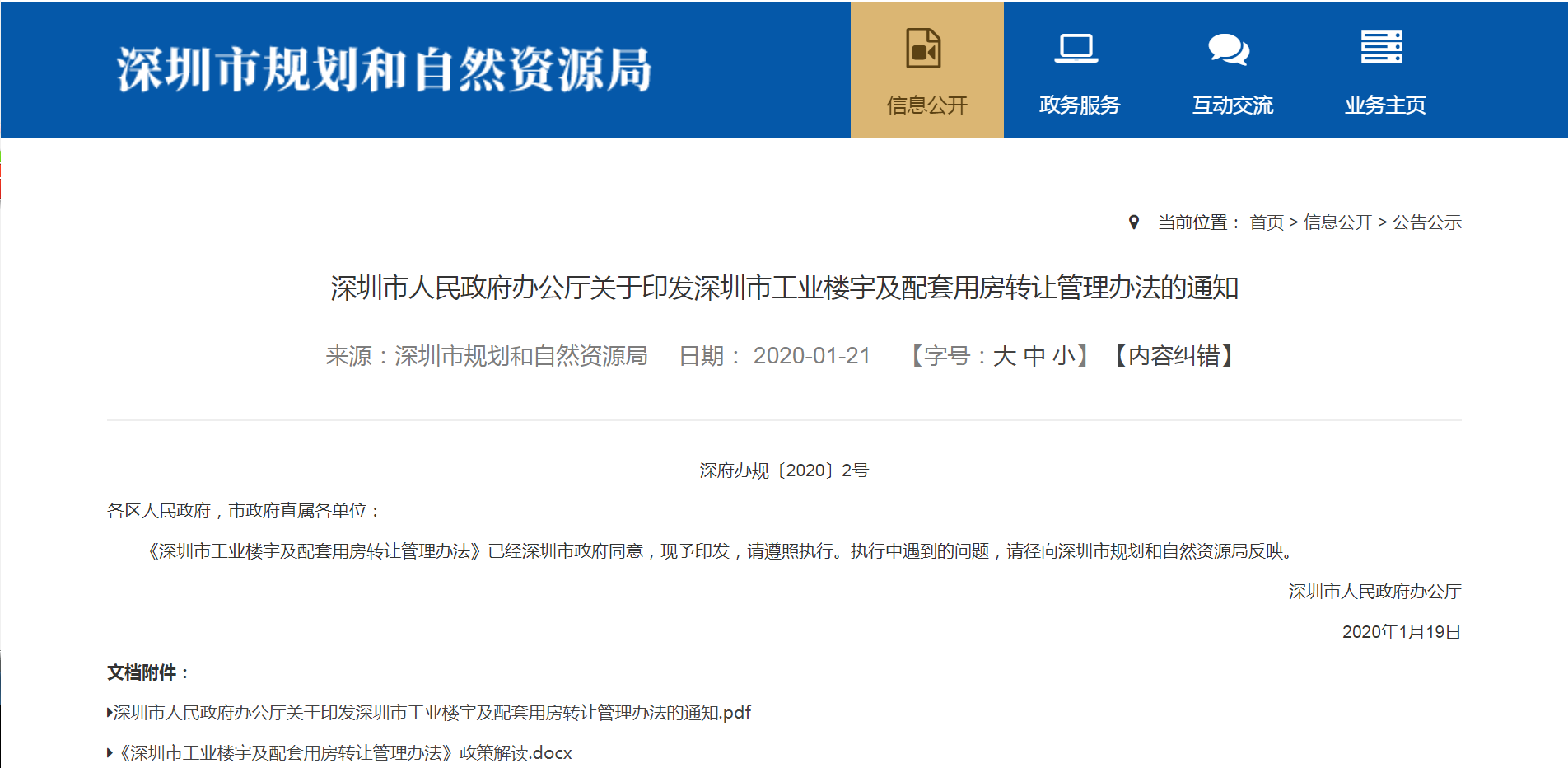 見圳客戶端·深圳新聞網(wǎng)2020年1月21日訊(見圳客戶端、深圳新聞網(wǎng)記者潘潤華)為進一步減輕企業(yè)負(fù)擔(dān),改善營商環(huán)境,推動產(chǎn)業(yè)轉(zhuǎn)型升級,深圳出新政取消工業(yè)樓宇及配套用房轉(zhuǎn)讓增值收益、完善轉(zhuǎn)讓規(guī)則!1月21日,記者從深圳市規(guī)劃和自然資源局獲悉,《深圳市工業(yè)樓宇及配套用房轉(zhuǎn)讓管理辦法》(以下簡稱《管理辦法》)經(jīng)深圳市政府同意正式印發(fā)?!豆芾磙k法》規(guī)范了工業(yè)樓宇及工業(yè)配套用房受讓人資格條件、強化了產(chǎn)業(yè)監(jiān)管、設(shè)定了過渡政策。據(jù)悉,《管理辦法》自2月1日起施行,有效期5年。