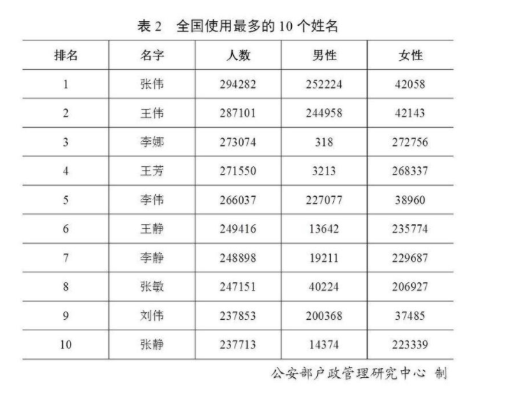 全國(guó)戶籍人口中,有30萬(wàn)個(gè)“張偉”、27萬(wàn)個(gè)“李娜”…