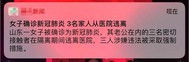 見(jiàn)圳客戶(hù)端?深圳新聞網(wǎng)2020年1月30日訊(見(jiàn)圳客戶(hù)端、深圳新聞網(wǎng)記者 張玲)這個(gè)春節(jié),有點(diǎn)不一樣。疫情當(dāng)前,需要全民齊努力。前不久一條新聞彈窗,相信很多人都看到了:山東一女子被確診為新型冠狀病毒感染的肺炎,她的老公等三名密切接觸者在隔離期間逃離醫(yī)院,三人涉嫌違法被采取強(qiáng)制措施。