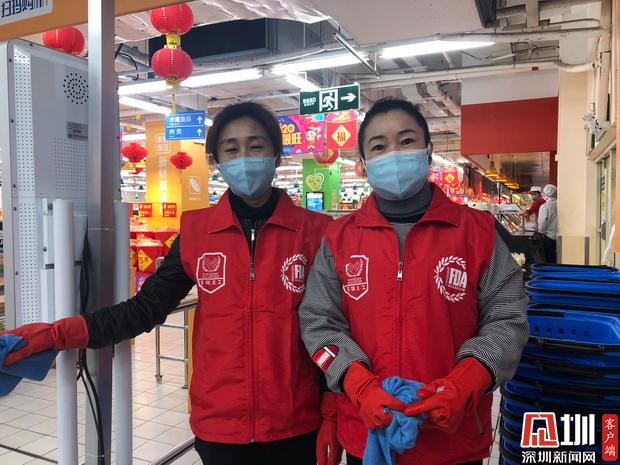“其實(shí)家里人知道后也不贊成我們這個(gè)時(shí)候來做志愿者,畢竟也有點(diǎn)擔(dān)心嘛”于文平對記者說:“我們作為一個(gè)小市民,對國家來說大的貢獻(xiàn)可能談不上,但是因?yàn)槲蚁矚g深圳這座城市,所以我決定要出一份力,做一些力所能及的事,過年期間能讓大家吃上安心的食品,來購物的時(shí)候能用上消毒過的購物車、購物籃,我也覺得很開心?!?/p>