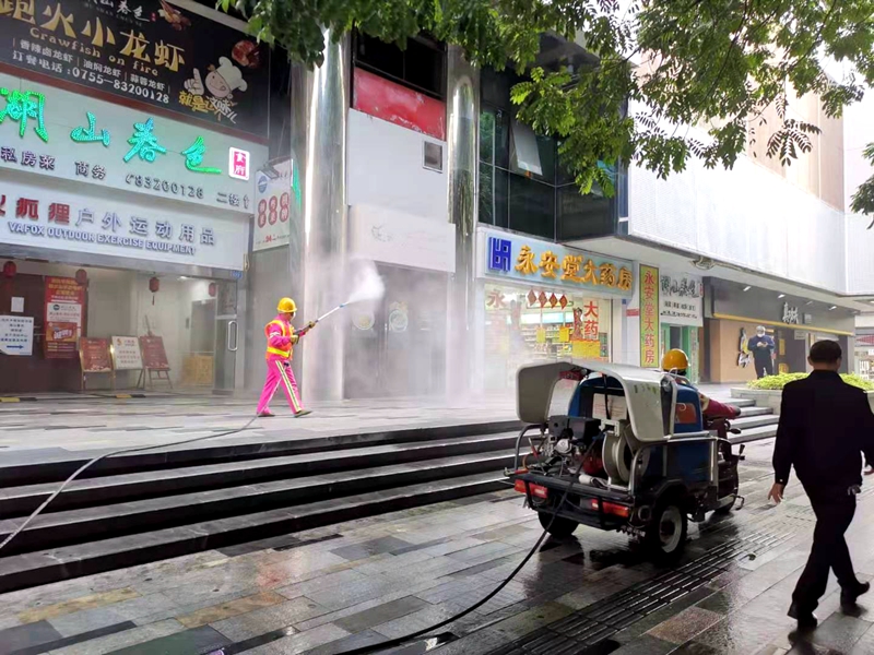 小區(qū)周圍噴灑消毒液