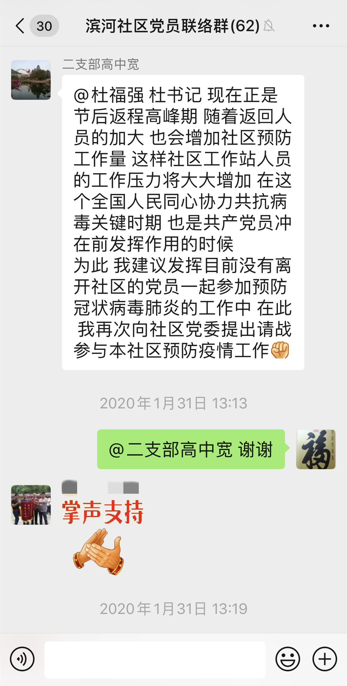 深圳新聞網(wǎng)2月2日訊(見圳客戶端、深圳新聞網(wǎng)記者 邱曉潔)“在此,我再次向社區(qū)黨委提出請戰(zhàn)參與本社區(qū)預(yù)防疫情工作。”1月31日,福田區(qū)南園街道濱河社區(qū)老黨員高中寬在濱河社區(qū)黨員聯(lián)絡(luò)微信群里再次主動請纓參與社區(qū)疫情防控工作。
