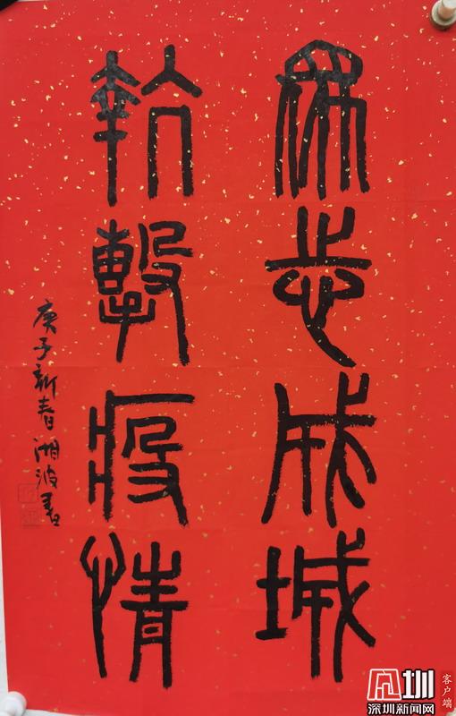 流暢的線(xiàn)條,簡(jiǎn)練的筆刃,一個(gè)個(gè)一線(xiàn)醫(yī)務(wù)人員奮戰(zhàn)疫情的場(chǎng)景躍然紙人,他們?nèi)蔽溲b身著防護(hù)服,或手持醫(yī)療器械,或?yàn)椴∪嗽\治,或記錄檢測(cè)數(shù)據(jù)……一幕幕緊張的工作畫(huà)面浮現(xiàn)在眼前。記者看到,這些畫(huà)作上均落款"抗疫前線(xiàn)最可敬的人"。此外,另一幅紅色大紙書(shū)寫(xiě)的篆字書(shū)法作品書(shū)寫(xiě)的內(nèi)容為:眾志成城,抗擊疫情。