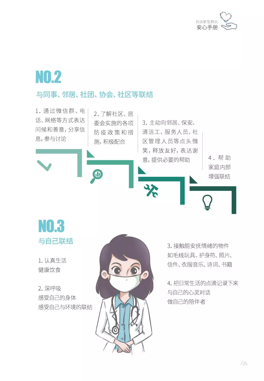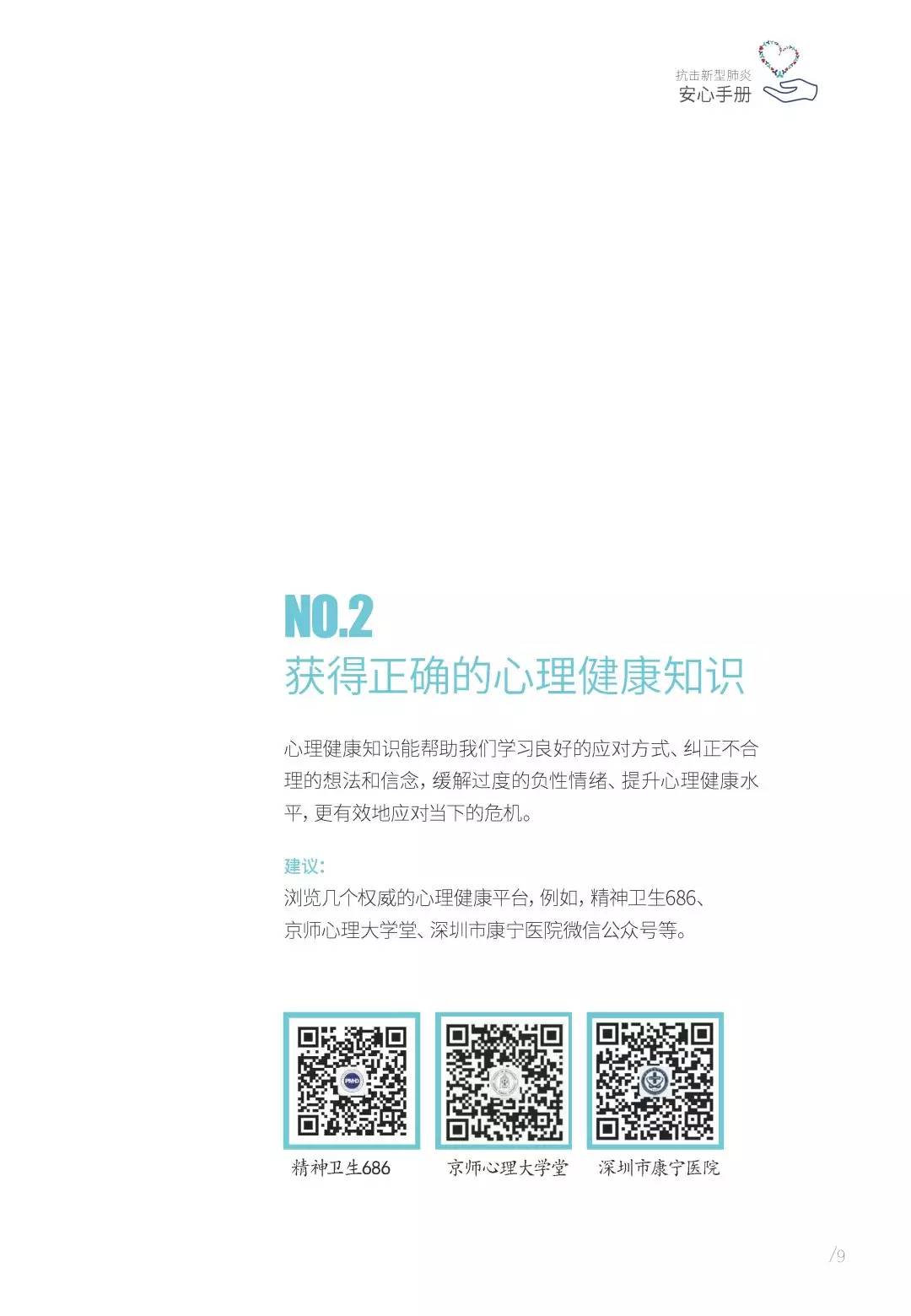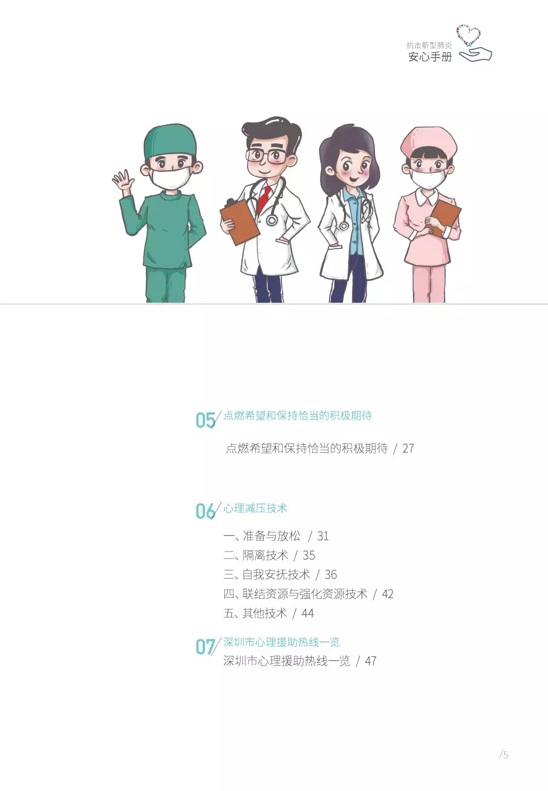 抗擊新型肺炎“安心手冊(cè)”由深圳市精神衛(wèi)生中心/深圳市康寧醫(yī)院支持,深圳市康寧醫(yī)院始建于1980年,是深圳市唯一一家集預(yù)防、醫(yī)療、康復(fù)、科研、教學(xué)于一體的公立三甲精神病??漆t(yī)院。2010年以來(lái),醫(yī)院連續(xù)九年名列復(fù)旦大學(xué)醫(yī)院管理研究所中國(guó)最佳??婆判邪窬駥?漆t(yī)院前十位;2017年榮膺第五屆全國(guó)文明單位;2019年精神科獲評(píng)廣東省高水平臨床重點(diǎn)???。醫(yī)院服務(wù)在各類顧客體驗(yàn)度和公眾滿意度測(cè)評(píng)中,名列前茅。