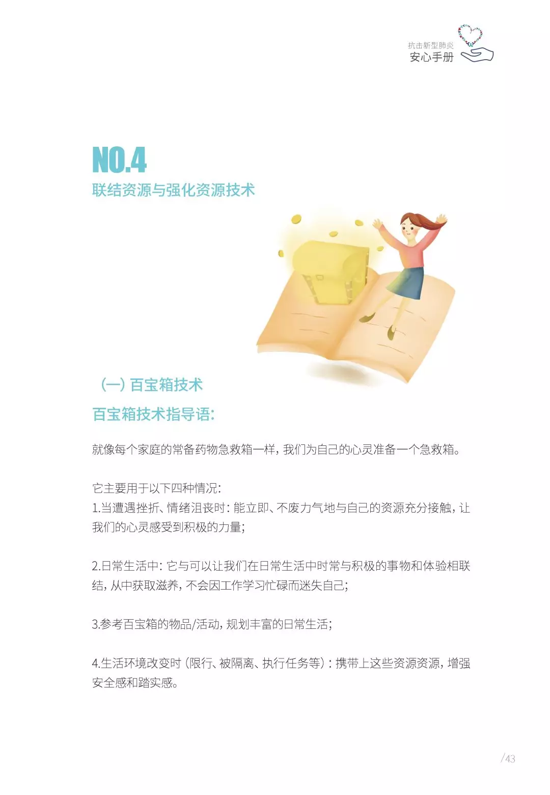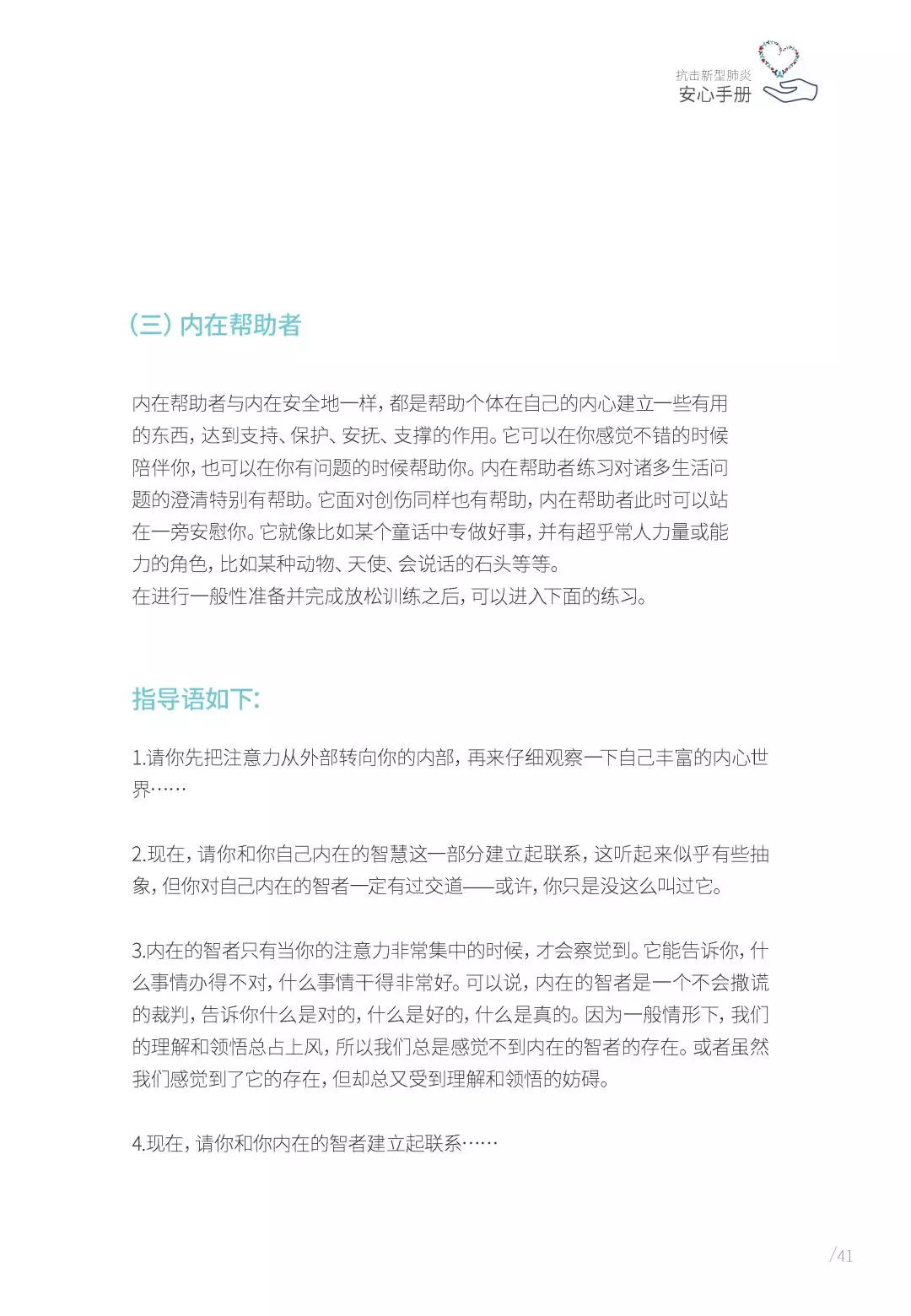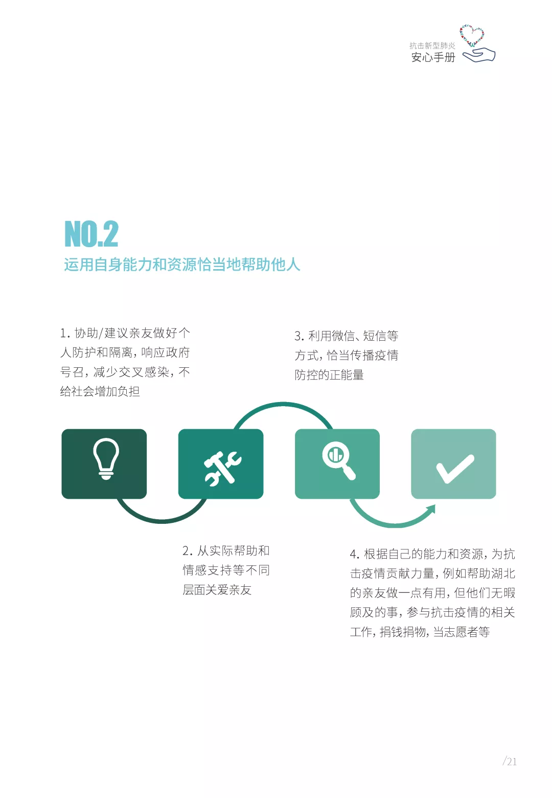抗擊新型肺炎“安心手冊(cè)”由深圳市精神衛(wèi)生中心/深圳市康寧醫(yī)院支持,深圳市康寧醫(yī)院始建于1980年,是深圳市唯一一家集預(yù)防、醫(yī)療、康復(fù)、科研、教學(xué)于一體的公立三甲精神病??漆t(yī)院。2010年以來(lái),醫(yī)院連續(xù)九年名列復(fù)旦大學(xué)醫(yī)院管理研究所中國(guó)最佳??婆判邪窬駥?漆t(yī)院前十位;2017年榮膺第五屆全國(guó)文明單位;2019年精神科獲評(píng)廣東省高水平臨床重點(diǎn)???。醫(yī)院服務(wù)在各類顧客體驗(yàn)度和公眾滿意度測(cè)評(píng)中,名列前茅。