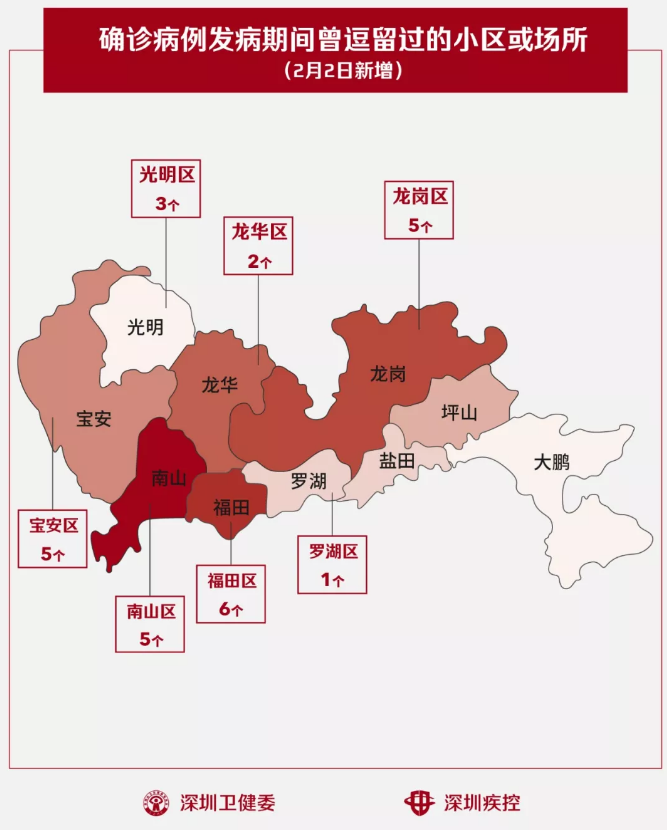 2月2日,疾控專業(yè)人員通過最新的流行病學調(diào)查確認,深圳新增27個小區(qū)(場所),有新確診的病人在出現(xiàn)病征期間曾經(jīng)逗留。