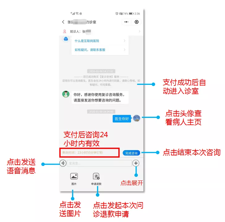 方式二:亦可通過(guò)直接掃描醫(yī)生二維碼,添加就診人后可以在診室向醫(yī)生發(fā)起問(wèn)診咨詢