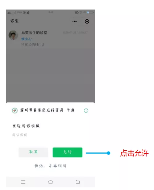 首次進(jìn)入診室,需要授權(quán)發(fā)送問(wèn)診提醒