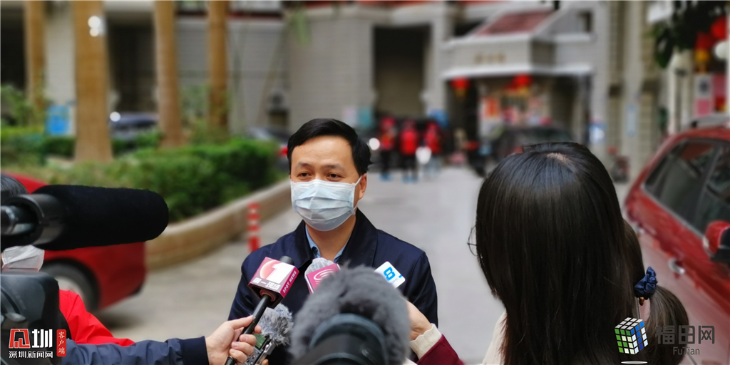 2月9日下午,記者來到梅林街道山水居小區(qū)實地探訪。進入小區(qū)前,所有進出人員都必須量體溫,正好來此調(diào)研的福田區(qū)委副書記黃曉鵬也不例外。