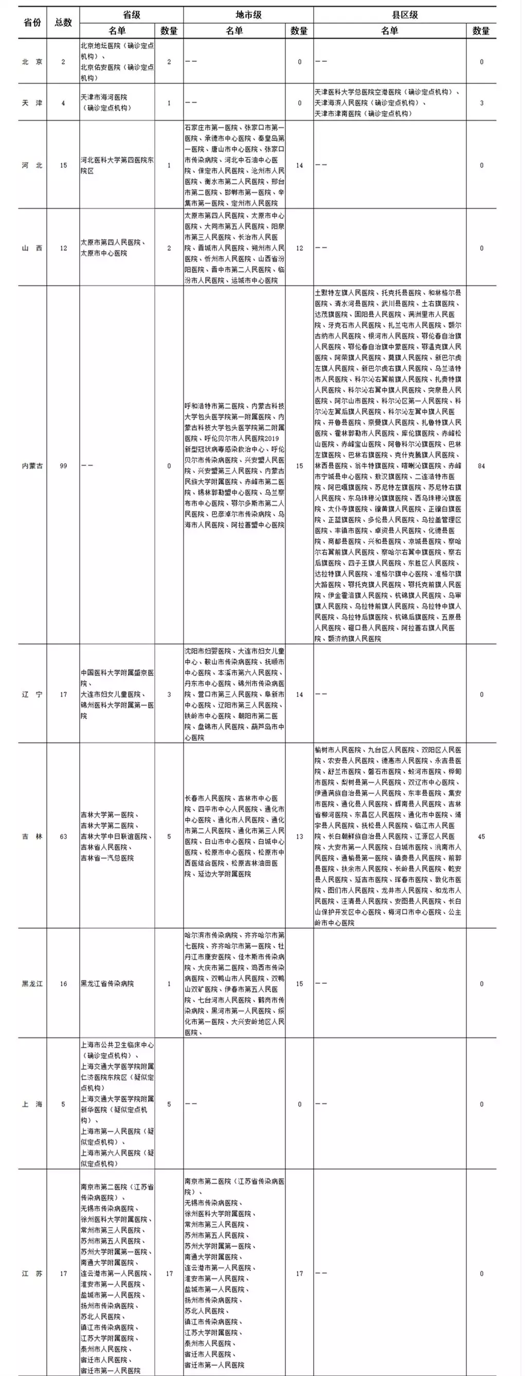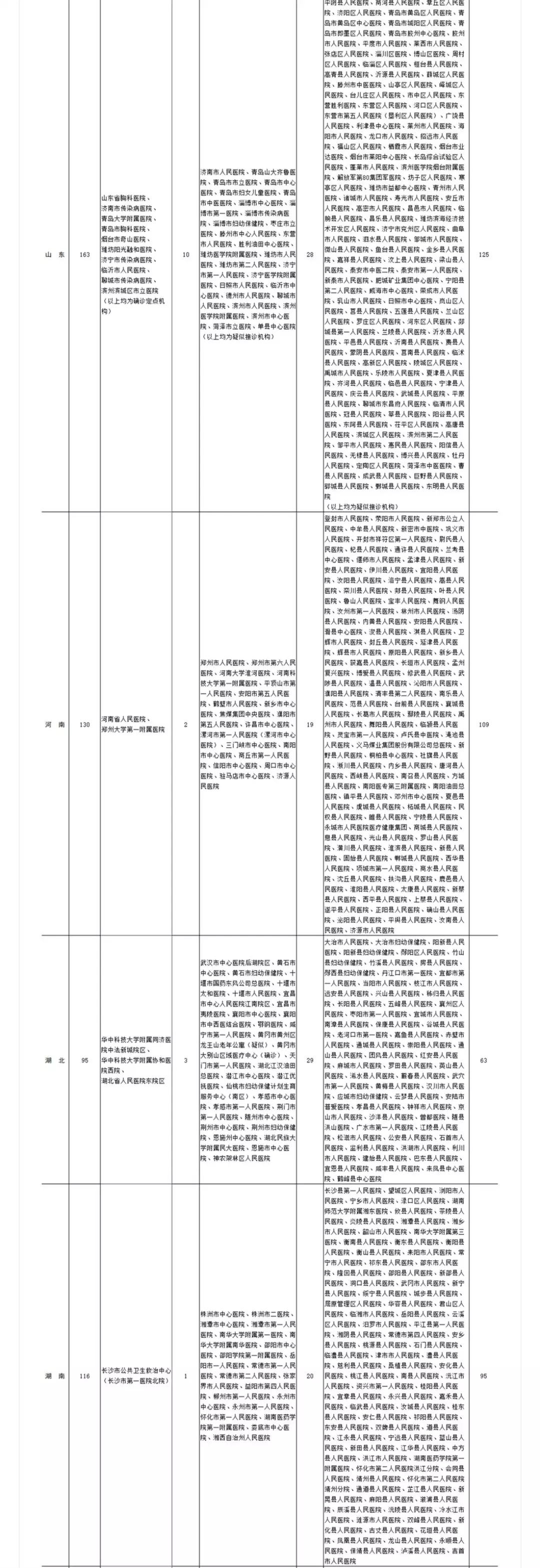 各?。▍^(qū)、市)新型冠狀病毒感染疑似或確診孕產婦產檢和住院分娩定點醫(yī)院(截至2020年2月11日)
