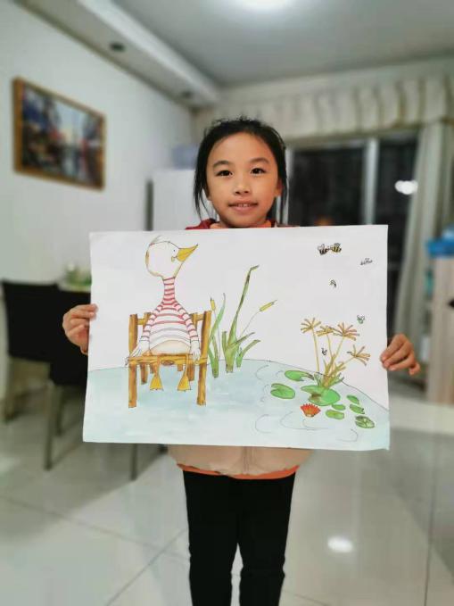 我們自由地花3-4個(gè)小時(shí)畫一幅畫,為武漢疫區(qū)孩子送去祝福,希望疫情早點(diǎn)過去,孩子們都像這只《自由的小鴨》一樣,在祖國的懷抱快樂地成長。