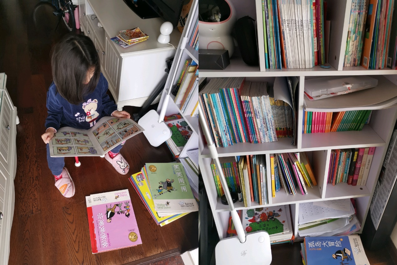 (圖二:看書,她有自己開(kāi)放式的小書柜,有時(shí)候是我們陪讀)