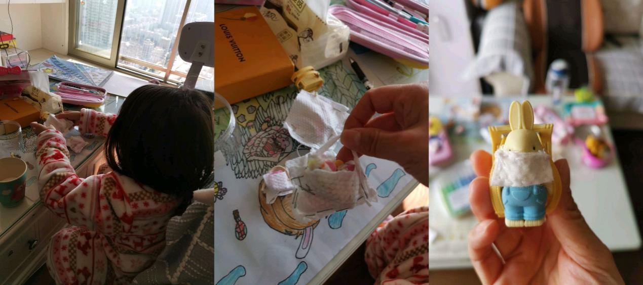 (圖五:玩手工,給娃娃們縫制口罩或包包)