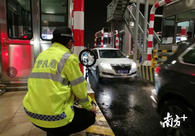 龍城街道黨員干部、工作人員與龍崗區(qū)退役軍人義工隊(duì)、龍崗交警組成防控隊(duì)伍,借助現(xiàn)場(chǎng)高速雨棚的遮擋,對(duì)進(jìn)深車輛一一進(jìn)行排查。