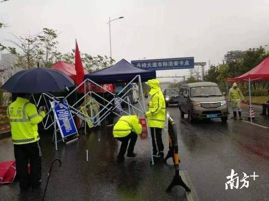 寶安區(qū)羅田檢疫站指揮部總指揮,石巖街道黨工委副書記、人大工委主任鄧亞虎,石巖街道副主任林志明和羅田交通聯(lián)合檢疫站臨時(shí)黨支部黨員冒雨檢查。當(dāng)晚,深圳市公安局經(jīng)偵支隊(duì)支援4名民警在現(xiàn)場(chǎng)冒雨防疫檢查。