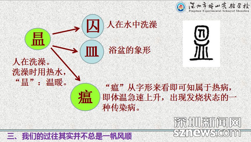 坪山實驗學(xué)校校長安國強(qiáng)校通過“說文解字”的形式生動講解了“瘟”與“疫”的字義,讓大朋友和小朋友們都理解了瘟疫爆發(fā)時的可怕性與嚴(yán)重性。他還從歷史的角度讓同學(xué)們了解人類與自然災(zāi)害斗爭的過往。