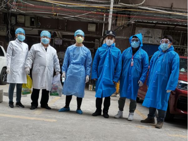 ▲李忠旺和其他抗疫人員準(zhǔn)備入戶(hù)了解隔離人員情況。