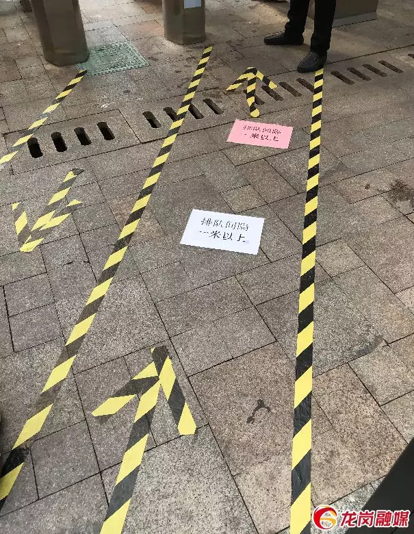 小區(qū)行人進(jìn)出匝道設(shè)置導(dǎo)流標(biāo)識引導(dǎo)居民排隊測量體溫后進(jìn)出。
