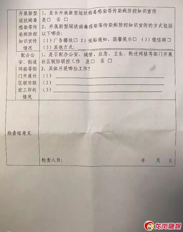 A:區(qū)住建局11組檢查人員都手握一張《龍崗區(qū)物業(yè)服務(wù)企業(yè)新型冠狀病毒防控工作檢查表》,其中按照“物業(yè)服務(wù)企業(yè)對企業(yè)從業(yè)人員的疫情防控情況”“口罩、手套等一次性衛(wèi)生用品專用垃圾桶的設(shè)置情況”“物業(yè)服務(wù)企業(yè)防疫責(zé)任落實情況”“開展新型冠狀病毒感染等傳染病防控知識宣傳情況”“配合公安、街道網(wǎng)格等部門開展社區(qū)聯(lián)防聯(lián)控工作情況”等五大類17條檢查內(nèi)容展開檢查,視情況評定“紅榜”或“黑榜”。