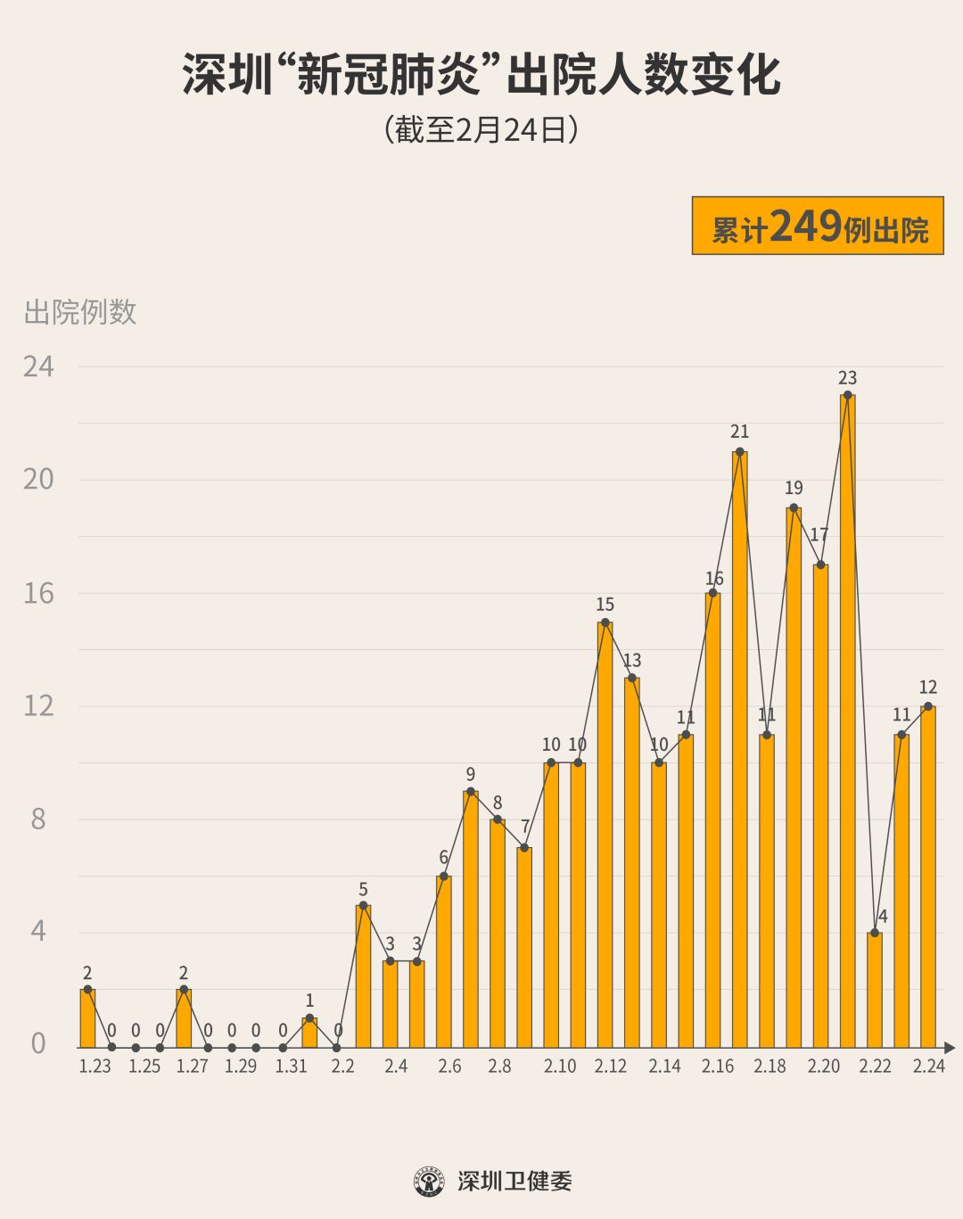 2月24日下午,經(jīng)專家組會診,深圳有12名新型冠狀病毒肺炎確診患者出院,累計達249人,連續(xù)22天有人出院。