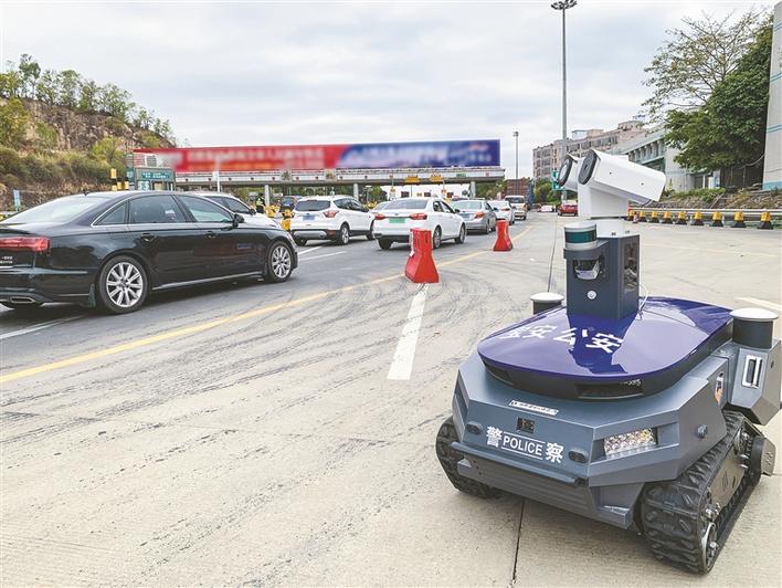 警用巡視機器人“建國”在深圳高速路口執(zhí)行巡邏任務。
