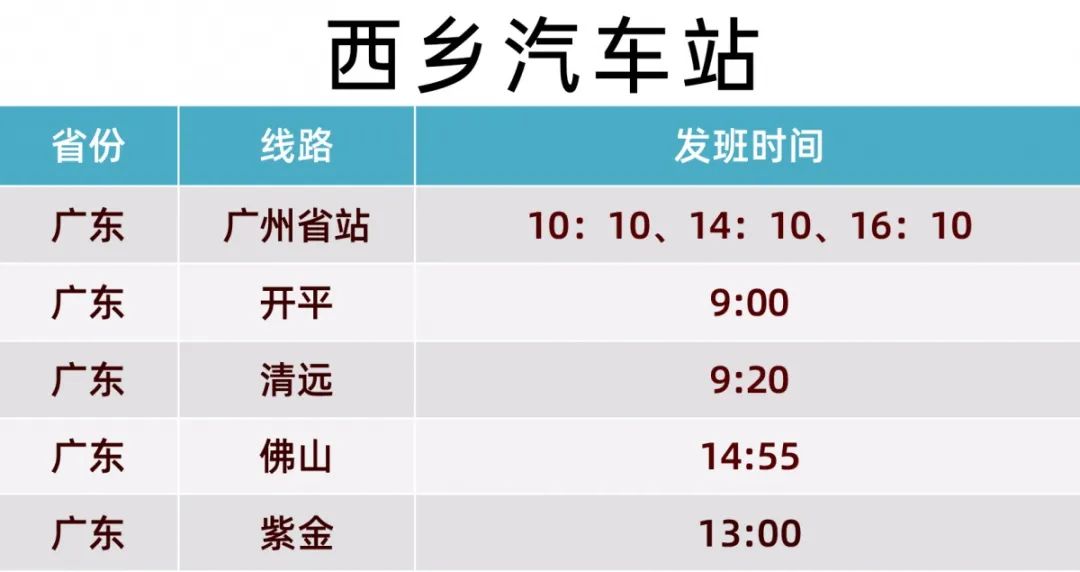 包括深圳汽車客運站(銀湖站)、龍崗長途汽車客運站、寶安汽車客運站、蛇口汽車客運站、沙井汽車站、大鵬汽車客運站。