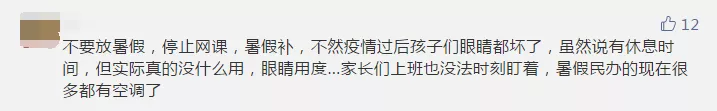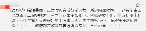 一些參與者留言建議減少或暫停網(wǎng)課時(shí)間,縮短周末或暑假時(shí)間進(jìn)行補(bǔ)課。