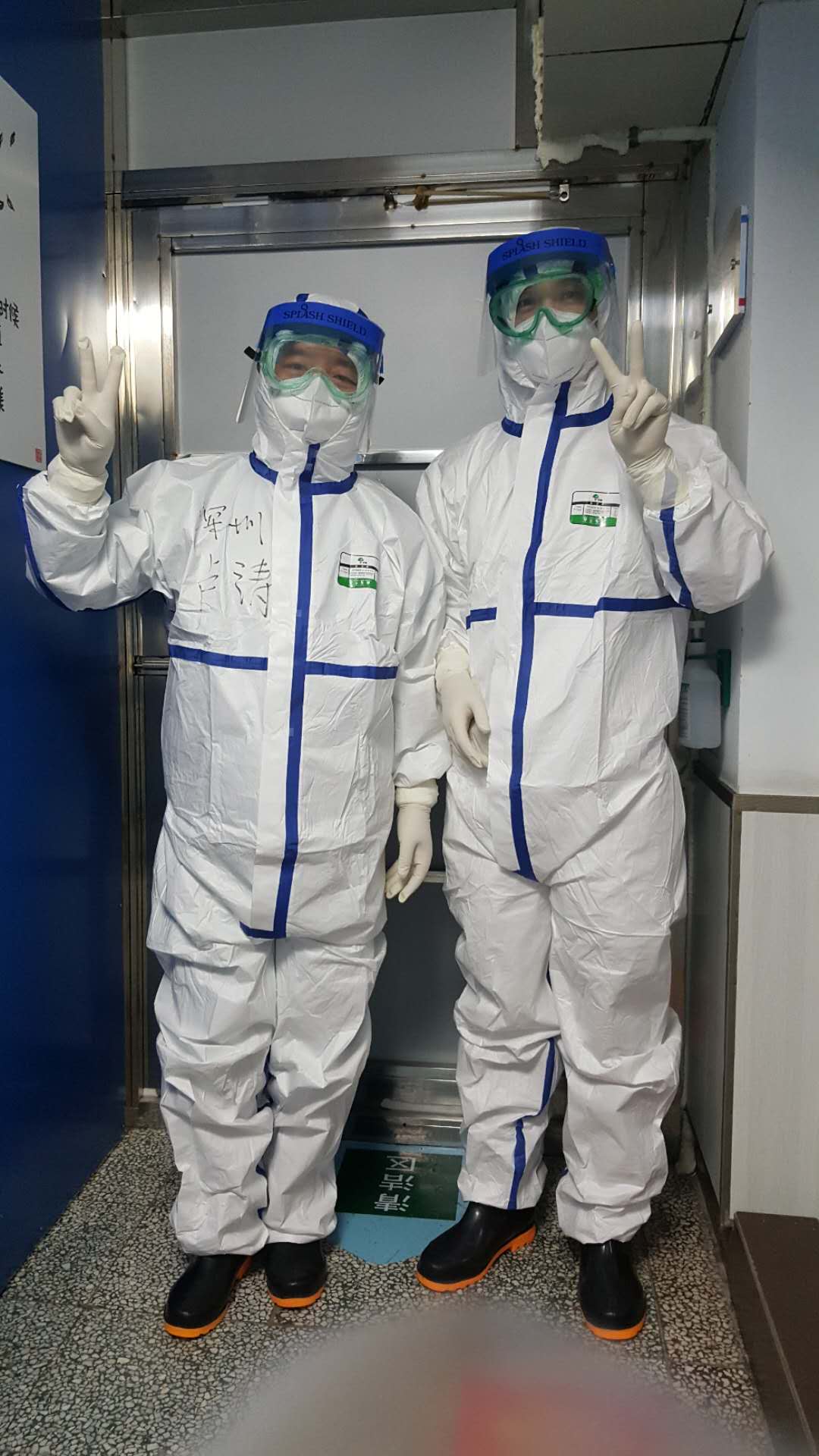 一切穿戴妥當(dāng),請(qǐng)護(hù)士長(zhǎng)拍個(gè)照,留下了最珍貴最勇敢的照片。深吸一口氣,推門……我和我的隊(duì)員們一樣,沖上了最前沿!