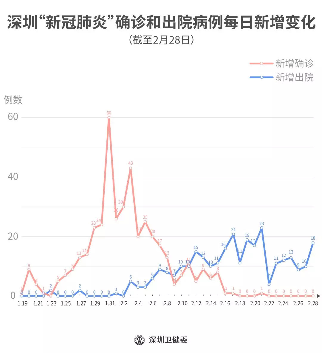 截至2月28日24時(shí),深圳累計(jì)報(bào)告“新冠肺炎”確診病例417例。2月28日當(dāng)天全市無(wú)新增確診病例,當(dāng)天出院病例18例(從26日起不再公布出院個(gè)案)。