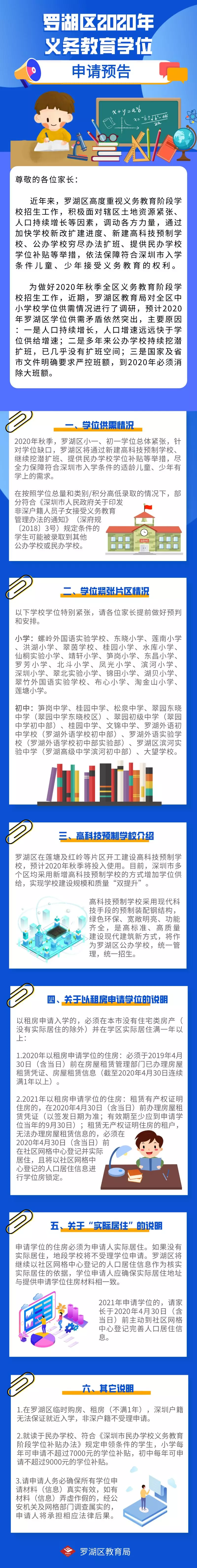 記者29日從羅湖區(qū)教育局了解到,為做好2020年秋季全區(qū)義務(wù)教育階段學(xué)校招生工作,近期,羅湖區(qū)教育局對全區(qū)中小學(xué)校學(xué)位供需情況進(jìn)行了調(diào)研。調(diào)研結(jié)果顯示,由于人口增速遠(yuǎn)遠(yuǎn)快于學(xué)位供給增速,擴(kuò)班空間有限以及國家及省市文件明確要求嚴(yán)控班額的要求,預(yù)計2020年羅湖區(qū)學(xué)位供需矛盾依然突出。申請預(yù)告指出,按照學(xué)位總量和類別/積分高低錄取原則,部分符合規(guī)定條件的學(xué)生可能被錄取到其他公辦學(xué)?;蛎褶k學(xué)校。部分學(xué)校學(xué)位特別緊張,請各位家長提前做好預(yù)判和安排。針對2021年申請學(xué)位的學(xué)生,請家長于2020年4月30日(含當(dāng)日)前主動到社區(qū)網(wǎng)格中心登記完善人口居住信息。