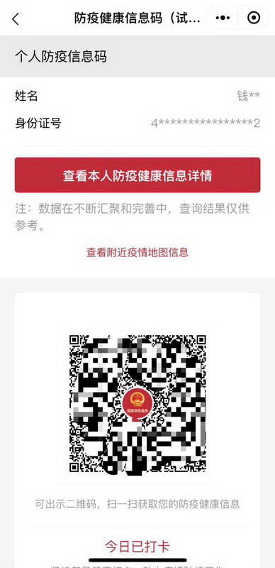 值得一提的是,依托國(guó)家政務(wù)服務(wù)平臺(tái)統(tǒng)一身份認(rèn)證系統(tǒng)、統(tǒng)一電子證照系統(tǒng),利用匯聚的衛(wèi)生健康、民航、鐵路等方面數(shù)據(jù)。公眾在實(shí)名認(rèn)證后,還可以一鍵查看本人的防疫健康相關(guān)信息詳情,如是否為新冠肺炎確診或疑似患者、是否為同行密切接觸人員。