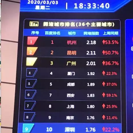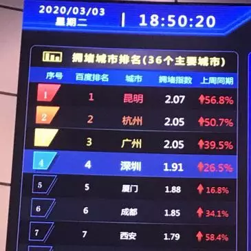 深圳擁堵指數(shù)升至榜單第二