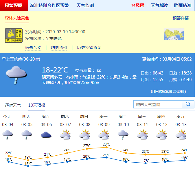 見圳客戶端·深圳新聞網(wǎng)2020年3月4日訊 深圳市氣象臺預計,4日我市陰天間多云有小雨,氣溫18-22℃,東風3-4級,夜間起沿海和高地有7-8級陣風;5日小雨局部中雨,伴有零散雷暴,明顯轉(zhuǎn)涼;6日偶有分散小雨;7日起轉(zhuǎn)多云,氣溫回升。