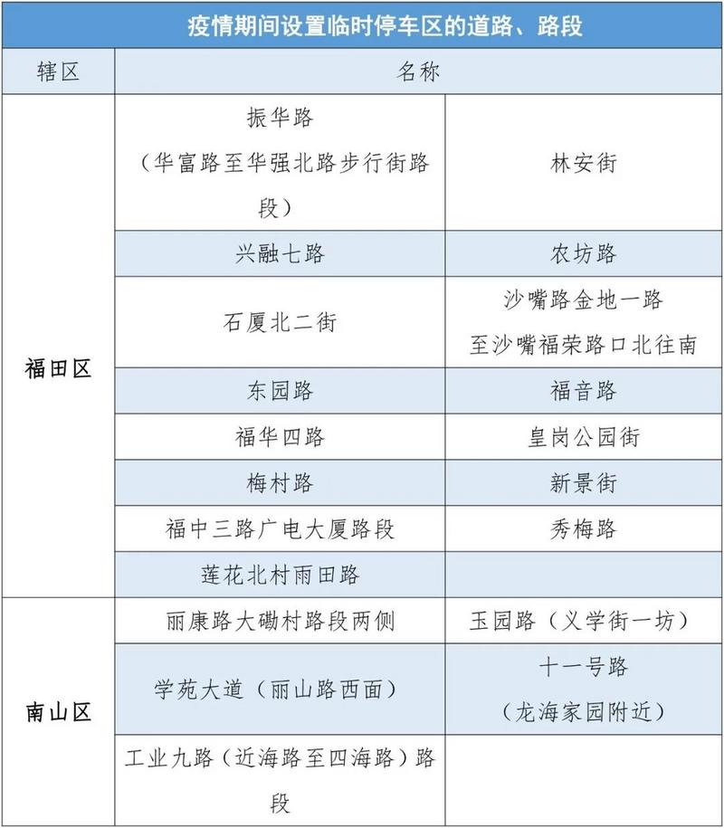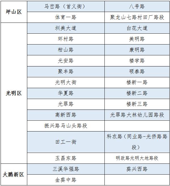 此外,根據(jù)市民反映的信息,深圳交警進(jìn)行實(shí)地走訪、勘查,決定再增設(shè)20條路段作為疫情期間臨時(shí)停車區(qū)。截至2020年3月3日,深圳交警共在全市171條路段做為疫情期間道路臨時(shí)停車區(qū),具體設(shè)置路段如下: