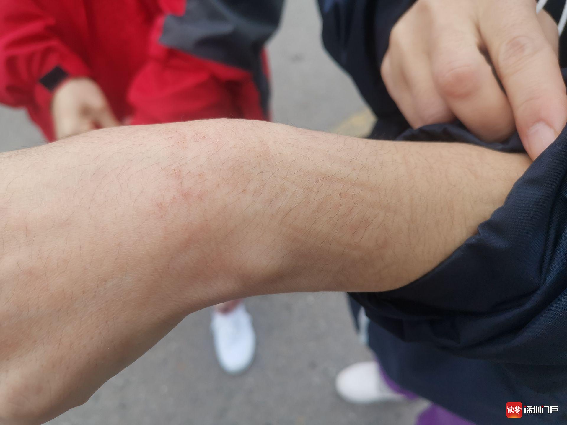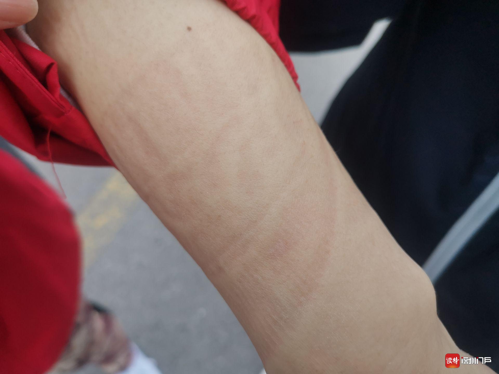 剛下班的張佳佳和祝玉娟擼起衣袖,手腕上滿是醫(yī)用橡膠手套的壓痕。