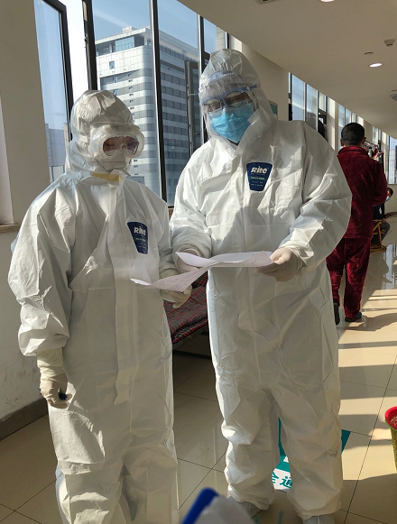 但后來黃主任跟我熟了以后卻對當初寫遺書這件事顯得有些難為情?!澳銊e再提這個事兒,那時候一天幾十個發(fā)熱患者住院,我是真的有點兒緊張。聽說喝酒有助于抵抗病毒,我還特意把朋友送給我的一瓶高度酒放在宿舍,下班以后就喝兩口。實際上喝酒是沒什么用的。”他有些自嘲地笑著說。