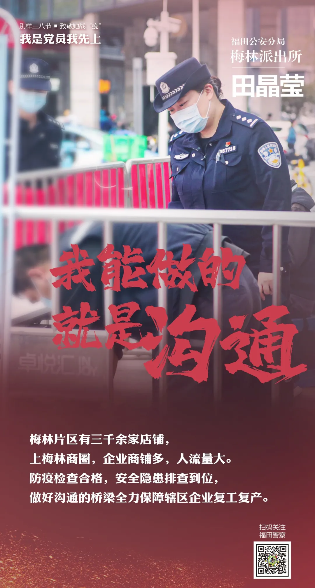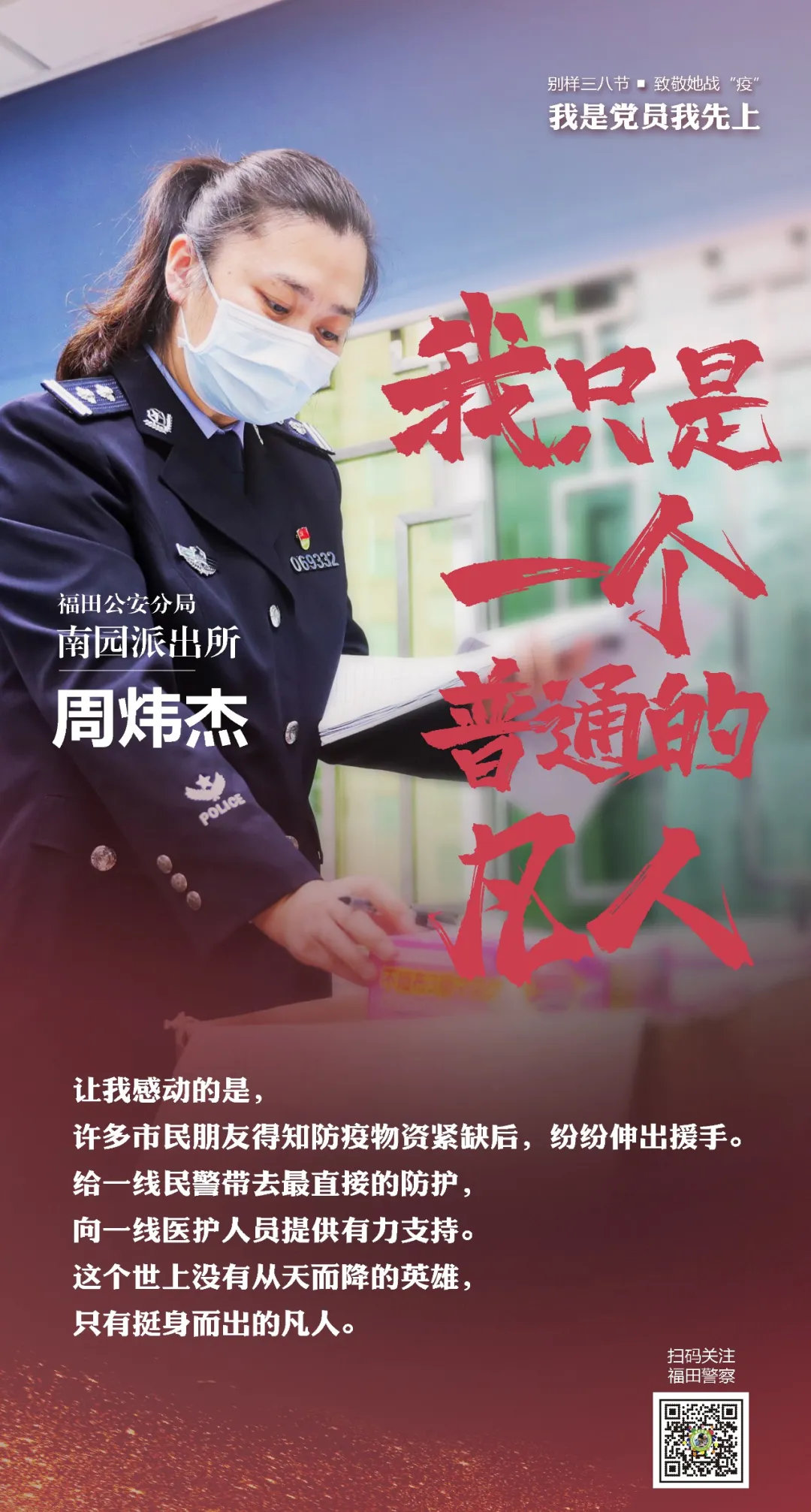 在“三八”國(guó)際勞動(dòng)?jì)D女節(jié)來(lái)臨之際,讓我們走進(jìn)福田警營(yíng),聽(tīng)聽(tīng)這些“最美逆行者”的戰(zhàn)疫故事。