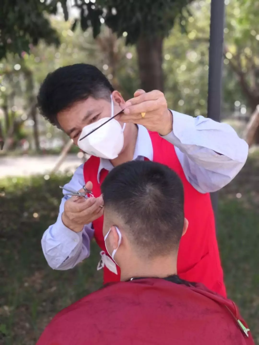 這天,垃圾吊師傅石明山急匆匆找到寶安能源生態(tài)園團總支志愿者服務隊,“我以前開過理發(fā)店,工具就在宿舍,我可以義務給大家理發(fā)!”大樹下,一套工具,兩把塑料凳,老石的“疫剪理發(fā)站”就齊活了。一個下午,老石一刻不停地為近50人修剪了精干的發(fā)型,并獲得“顧客”的一致好評。老值長陳林生理完發(fā)感慨道:“老石在廠里十幾年了,這么多年都是垃圾吊隊伍的中堅力量,沒想到理發(fā)技術(shù)也這么好!”天黑了,預約隊伍里還有數(shù)十人在排隊,石明山說,明天我白轉(zhuǎn)夜,等我后天下夜班,“疫剪理發(fā)站”咱們繼續(xù)!