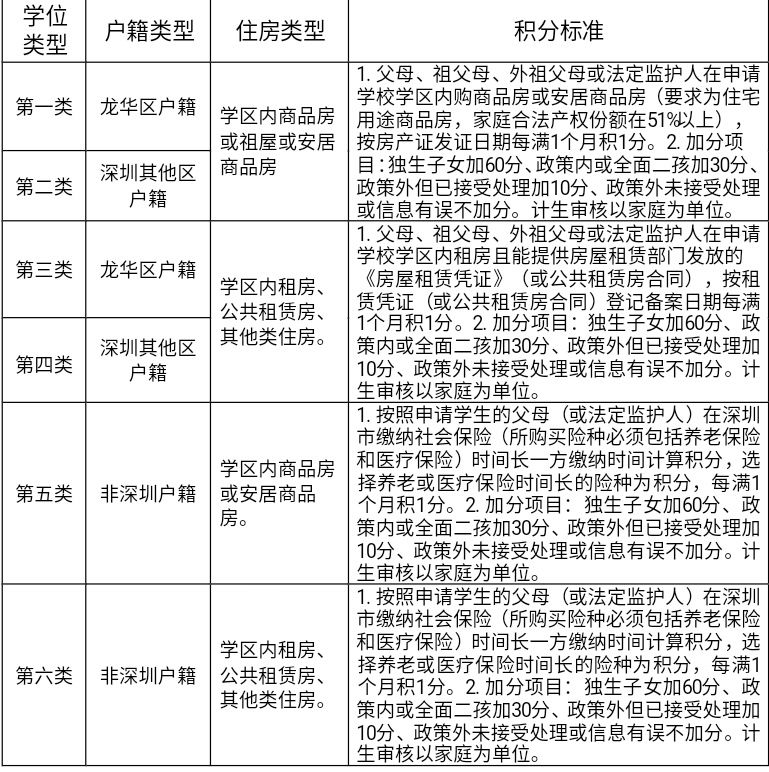深圳戶籍。申請(qǐng)入學(xué)適齡兒童、少年的父母(或法定監(jiān)護(hù)人)戶籍遷入深圳時(shí)間最長(zhǎng)的一方計(jì)算積分,每滿一個(gè)月加0.1分。