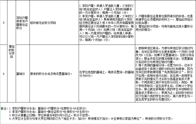 劃重點(diǎn):政策內(nèi)或全面二孩擬不再加分,獨(dú)生子女加2分;深圳戶籍自購(gòu)商品房產(chǎn)擬改為以房產(chǎn)購(gòu)買日期計(jì)算積分;非深戶籍?dāng)M按照養(yǎng)老保險(xiǎn)和醫(yī)療保險(xiǎn)兩種險(xiǎn)種同時(shí)繳納的時(shí)間計(jì)算積分;新增深圳戶籍或非深戶籍居住證積分;新增基礎(chǔ)分60分。