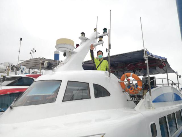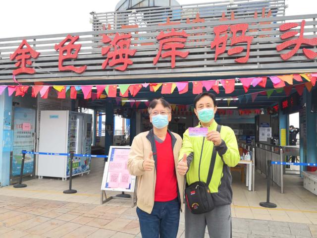 ▲尹克孝 (右 )來到鹽田金色海岸碼頭。