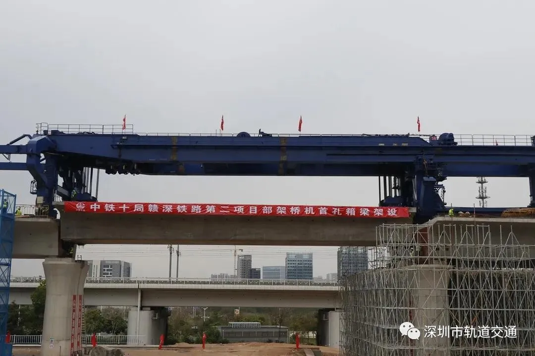 贛深鐵路10標(biāo)使用架橋機(jī)架設(shè)首榀箱梁圓滿完成