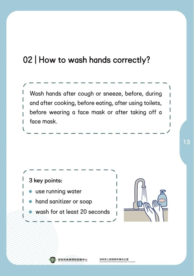 咳嗽或打噴嚏后,準備食物前、中、后,餐前便后,戴口罩前和摘口罩后,都要記得洗手。三個關鍵點:流動的水,使用洗手液或肥皂,洗夠20秒。