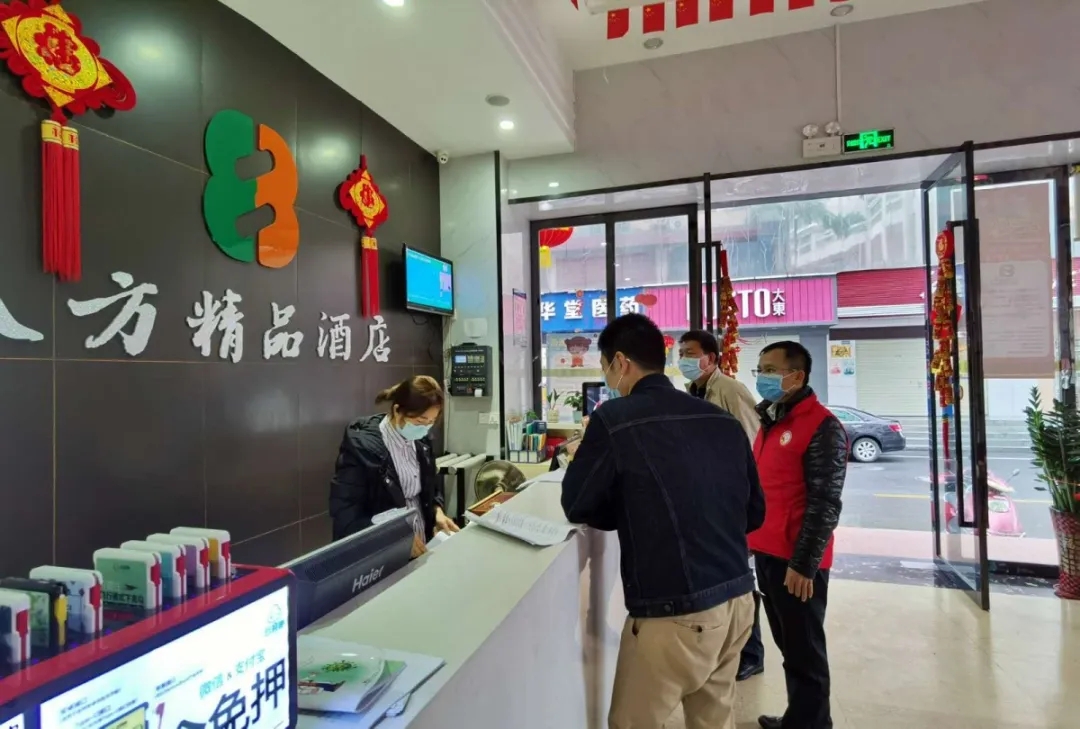 到轄區(qū)旅業(yè)酒店指導(dǎo)防疫和旅客入住規(guī)范。