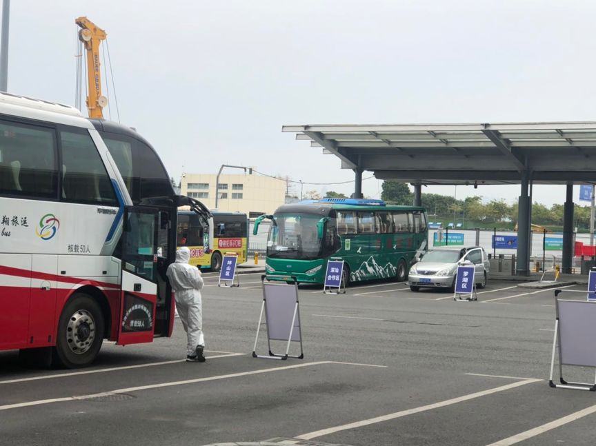 各區(qū)配備的大巴車,分流處配備翻譯人員、外事專干