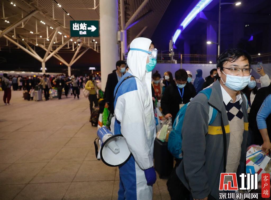 深圳北站客運車間黨總支書記龔建力告訴記者,為了確保湖北返深專列安全停靠站臺,深圳北站提前加強了清潔工作,并增派相關(guān)工作人員,確保返深湖北籍乘客有序安全出站。