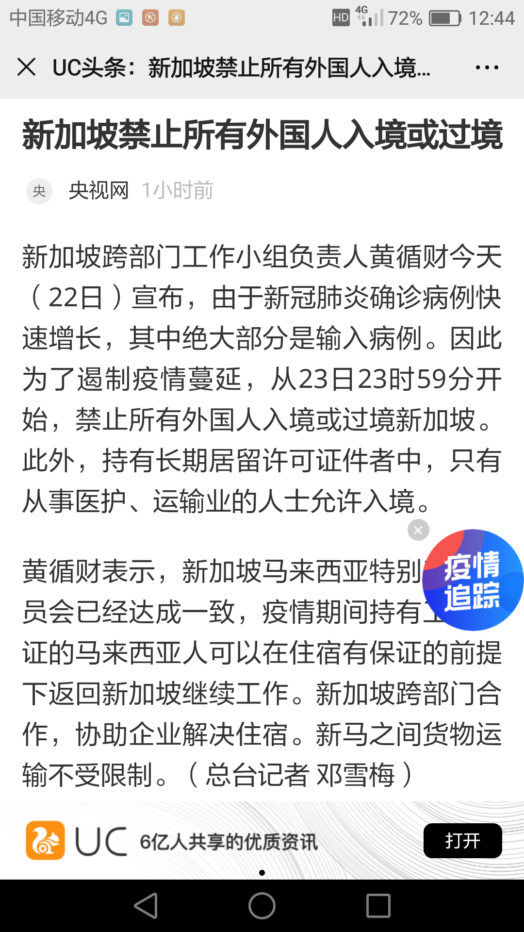 今日早些時候,據(jù)央視網(wǎng)報道,新加坡跨部門工作小組負責人宣布,為遏制疫情蔓延,從23日23時59分開始,禁止所有外國人入境或過境新加坡。同時,持有長期居留許可證件者中,也只有從事醫(yī)護、運輸業(yè)的人士允許入境。(記者蔡良煥)