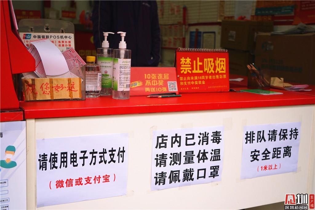 另一家在福田區(qū)華發(fā)北路,店號(hào)為83021044的投注站點(diǎn),門口已經(jīng)被店員用桌子堵上,并貼上了相關(guān)防疫告示,“之前深圳福彩中心的工作人員來(lái)檢查過(guò),后續(xù)也會(huì)給我們配送一些防護(hù)物資?!庇浾咴诖擞^察了30分鐘,期間僅有兩位彩民前來(lái),共購(gòu)買了8元彩票。店主馬先生向記者介紹,“以前大家都會(huì)來(lái)店里邊坐,主要買的是20分鐘開(kāi)兩次的‘快樂(lè)彩’,現(xiàn)在都不給進(jìn)來(lái),那個(gè)彩票也暫停銷售了。”
