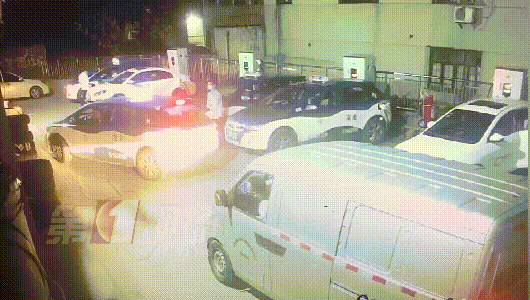 監(jiān)控畫面顯示,25日晚上23點(diǎn)左右,一輛出租車和一輛面包車先后到達(dá)龍崗大道木棉灣路段的一個(gè)充電站。出租車司機(jī)先找到了一個(gè)位置,準(zhǔn)備倒入充電時(shí),后面的面包車突然往前開,兩名司機(jī)因?yàn)橥\囄坏膯栴}發(fā)生爭執(zhí)。隨后,出租車司機(jī)下車?yán)碚?,動手推搡了面包車司機(jī)一下。