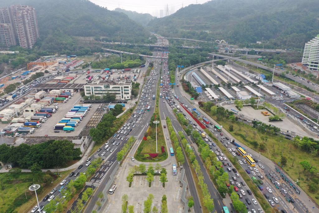 ▲梅林關(guān)早高峰航拍圖。